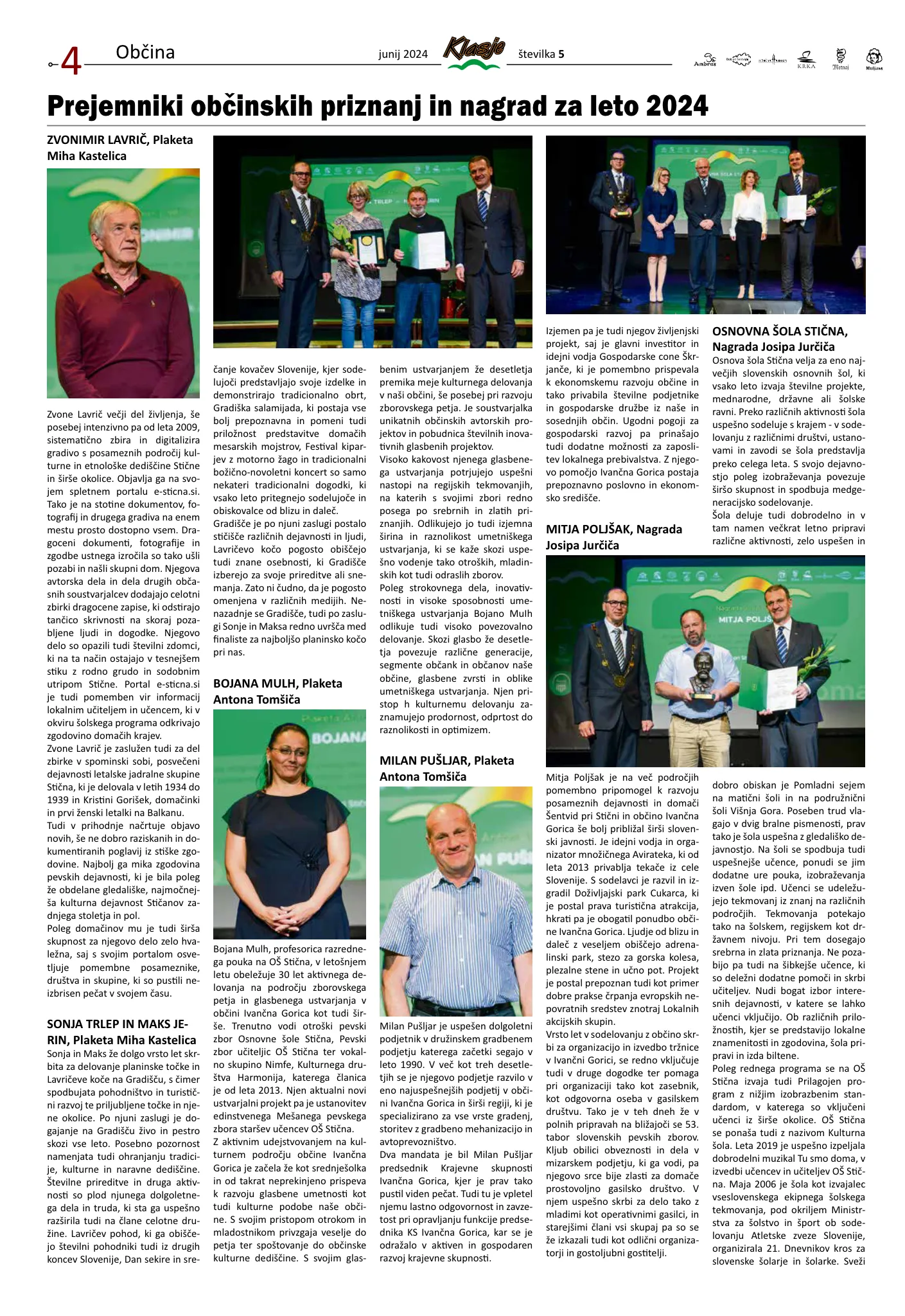 Za izjemen prispevek na področju domoznanstva ter ohranjanja kulturne in etnološke dediščine v občini Ivančna Gorica, je Plaketo Mihe Kastelica prejel Stičan, ZVONIMIR LAVRIČ.